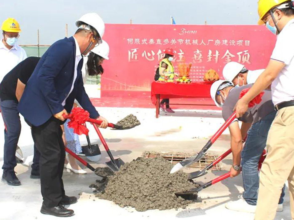 In 2003, the Shunde branch of Shini Plastics Technologies (Dongguan), Inc. was established, mainly offering services for clients in the West Bank of the Pearl River. With the further development of the plastics industry and market, Dongguan Shini started to find suitable land to build the factory in the Pearl River Delta area in 2016. Having highly recognized the business capacity and brand of Dongguan Shini, leaders at all levels of the Management Committee of Daliang Wusha Industrial Zone and the Economic Development Bureau at Daliang Street in Shunde provided Shini with the new address. Finally, they signed the land agreement on July 28th, 2020. Consequently, the project was officially started on March 25th, 2021, and the new plant roof-sealing ceremony of Shini Plastics Technologies (Foshan), Inc. was held on that day.
