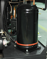 The core of the refrigeration system, highly efficient scroll compressor from a well-known manufacturer.