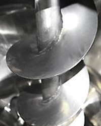 - Vertically mounted blending screw and cylinder ensure even mixing of materials.