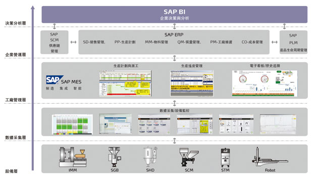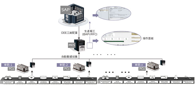 本系統通過SAP MII平臺打造製造執行系統,基於批量程序控製,提供了從原材料上線、到工序加工、到成品入庫,整個生產過程的即時資料採集、控製、分析和歷史追溯。它是企業內部計畫、物流、生產、品質部門取得第一手生產資訊的保障系統,有效保障了生產即時、透明化管理,歷史生產資料可追溯,直接提高製造命令執行力。並且連接ERP 與車間層系統,即時準確地展現生產運營狀況,幫助製造商實現卓越製造。
