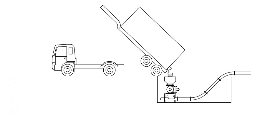 从集装箱车接收原料和通过空气输送至储料桶。因为可以移动,无论在任何地方都可以接收原料。不使用时可以移动,不需要固定作业场地。