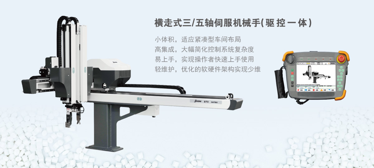 基于脉冲型板卡式控制系统,驱控一体在各方面都有做性能的提升,体积小、抗干扰性强、操作简单、维护方便、性价比高等优势成为驱控一体的诸多亮点。多轴一体式结构控制系统,控制箱体积缩小了80%,节省了安装空间。内部总线通讯,伺服参数等设置通过手控器统一写入,模块化卡片式拼接结构,操作简单性能提升。驱控一体模式将扬帆起航,引领机械手新潮流。