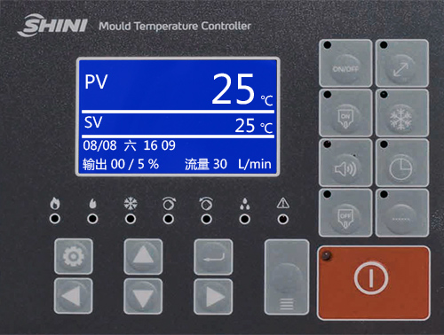Select an optional or customized flow sensor on the mould temperature unit. For example, the water heater STM-W has the option of adding a flow meter, which can add a flow sensor in the circulating loop, and its maximum working temperature can reach 120 ℃. Besides the high-temperature water heater, STM-SPW has a standard flow metering, and the unit's max working temperature is 200℃. Both units can measure the circulating loop's total flow in real-time, set the alarm threshold value, and prompt the flow abnormality in time. Other oil temperature control units or water chillers can also select and adapt to various customized flow metering solutions in different applications.