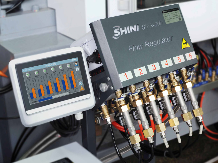 The SIFR intelligent flow regulator is mainly used to monitor the medium flow and temperature of each mould loop and can work with the mould temperature control unit, water chiller, or circular cooling water. Meanwhile, it can connect with multiple mould connectors, and the touch screen can display circulating water flow and temperature synchronously in real-time, with the maximum working temperature reaching 160 ℃, and manually control the flow. Moreover, a standard alarm function can set different alarm values for each water loop and give real-time feedback on the alarm information. Also, the machine has a communication interface, which can upload valuable information, such as flow, temperature, and alarm, to other intelligent systems as required, including injection moulding machine, extruder, and MES system, thus achieving data interconnection, sharing, tracing and analysis, and improving the real-time data utilization.