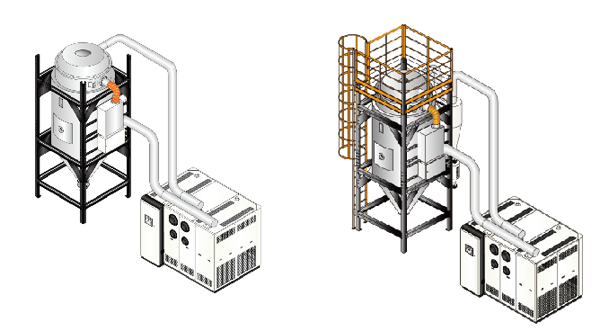 By Flexible combination in all size of insulateel hopper and dehumidifier, SD-PHC (with heater and controller) can become dehumidifying dryers which have the same function with SDD (with optional floor stand).