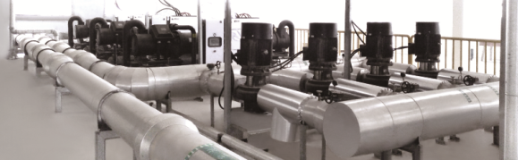 泵房內配備中央水泵組,固定於土建基座上,水泵組為一個整體,保證了良好的穩定性,噪音更低。泵組與管路連接處均採用軟管法蘭接頭,降低震動對水系統管路的影響。水泵電源線及周邊線槽均做防水處理,防止滲水觸電。