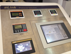 本次展會我們單獨展出了一套模擬演示系統,包括成型機的控制器及各個輔機的控制器,此系統由成型機的控制器做為主控單元,五個不同輔機產品的控制器做為從站單元,從而實現成型機對於不種類型輔機產品的集中控制。
