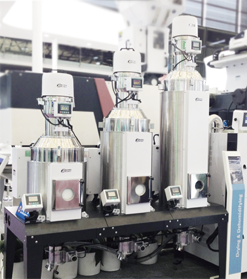 乾燥風量自動分配技術,主要特色體現在露點為-40℃的乾燥風可通過自動控制系統被按需自動分配至每個乾燥料桶,從而達到乾燥空氣的合理使用,減少浪費,且可避免原料過乾燥或乾燥不足。