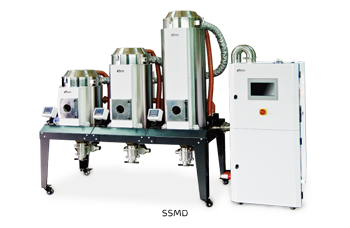 SSMD適用於同時對多種塑膠原料進行集中除濕乾燥的應用場合。在小批量多原料生產上,具有很高的靈活性。與傳統固定風量的除濕乾燥組合相比,信易智能模組化除濕乾燥組合不但可靈活提供最佳的工藝操作條件,還降低了系統的能量消耗。