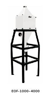 EOF-1000~4000採用中效棉過濾方式。同樣,含有增塑劑的高溫回風首先經過高效的翅片式率冷卻器,使氣態油脂更能液化,將氣態增塑劑及少許水蒸氣凝結為液態油水混合物被排除。剩餘混合氣體則首先通過第一層200目不銹鋼粗過濾器,濾出大部份的油粒,再經過中效棉過濾器過濾掉空氣中的細微油粒,從而達到過濾回風中增塑劑油粒的目的。