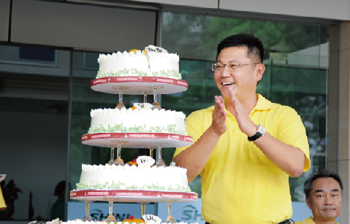 20日下午一時,45周年趣味運動會開幕。信易集團總經理吳峻睿為本次運動會致詞。在致詞中對信易的成長歷程做了精緻簡潔的描述,對全體信易人的努力給予了充分的肯定。隨後總經理伉儷共同為大家切開甜蜜的生日大蛋糕,並與全體同仁一起分享。隨後全體同仁共同唱響信易之歌,運動員代表、裁判員進行活動宣誓,趣味運動會比賽環節正式開始。