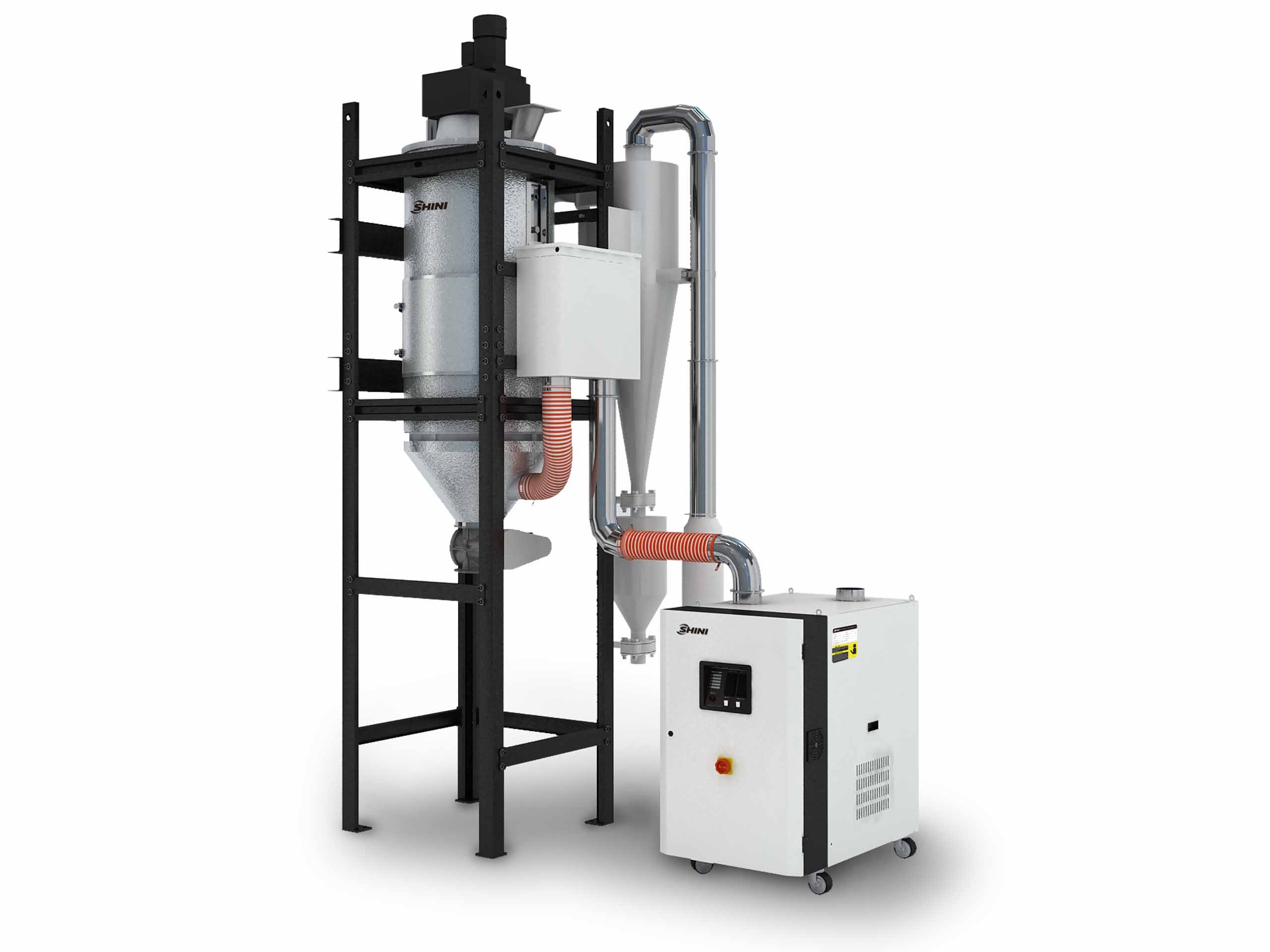 La serie SCR son cristalizadores de circuito cerrado que se utilizan para la cristalización constante de material molido PET o gránulos (pellets). Los materiales procesados pueden ser directamente secados y deshumidificados. Los materiales cristalizados pueden ser transportados al compartimento de almacenamiento de materiales o a la tolva de secado.