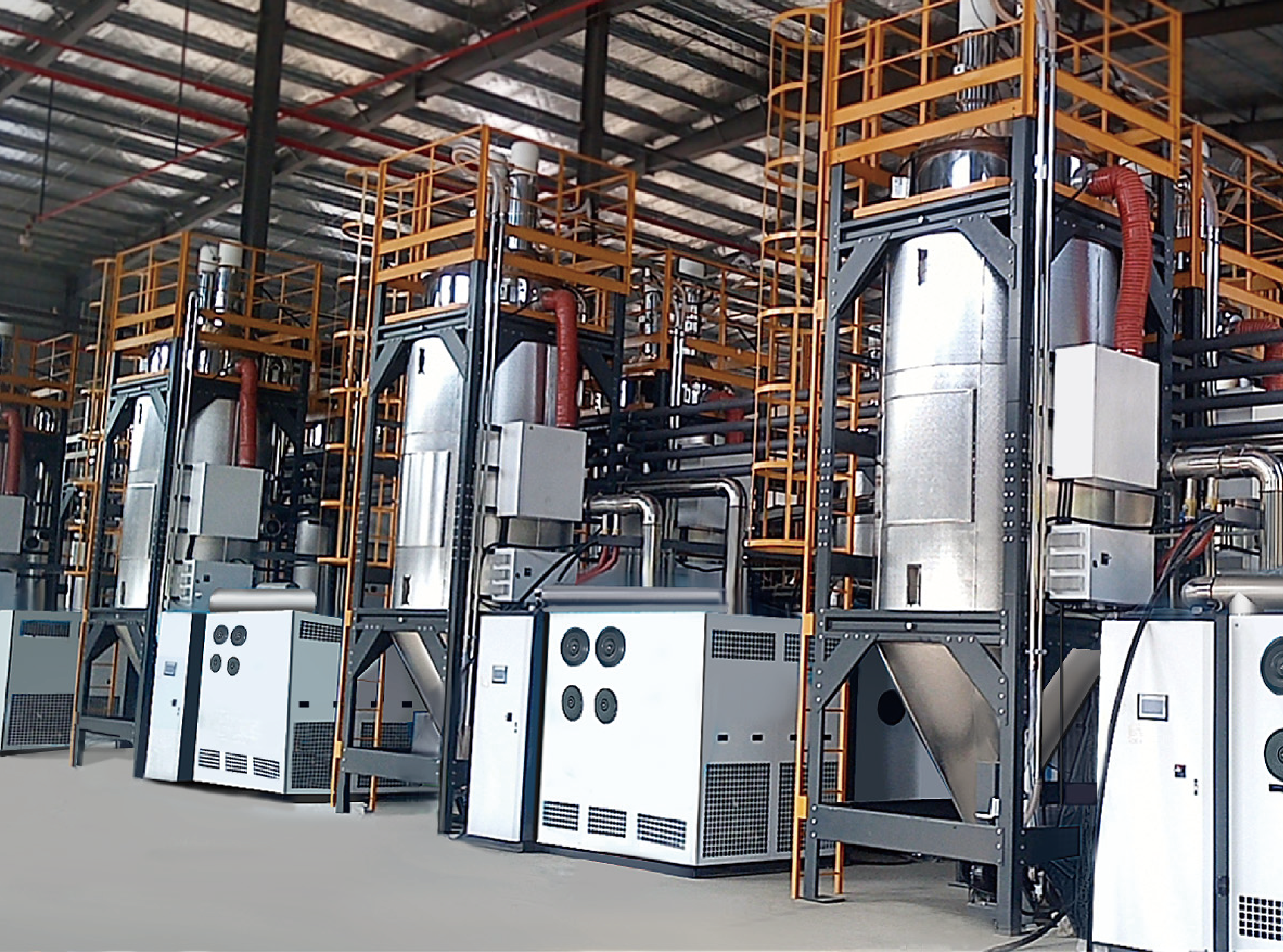 Bucle cerrado de sistema de transporte de dos etapas. Para el transporte de materiales a la tolva en la máquina de moldeo por inyección, Shini puede reducir en gran medida la disipación de calor y el riesgo de que el material se vuelva a humedecer.