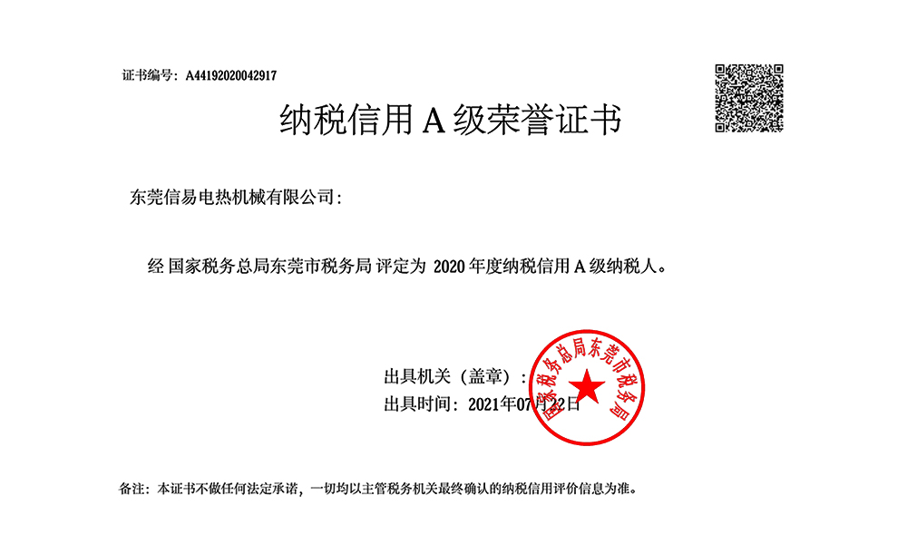 首頁 最新消息 重大新聞 信易榮獲2020年A級納稅信用榮譽證書 信易榮獲2020年A級納稅信用榮譽證書 2021-07-28 分享到: ChatGPT Perplexity Google AI 回上頁 东莞信易电热机械有限公司: 经国家税务总局东莞市税务局评定为 2020 年度纳税信用A级纳税人。 照片