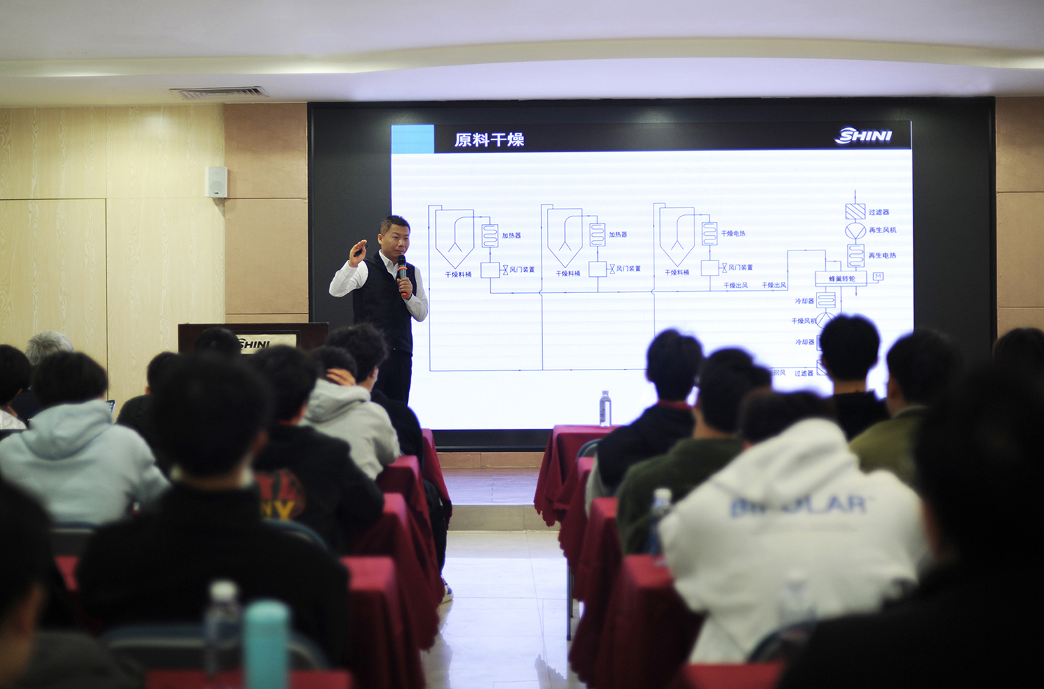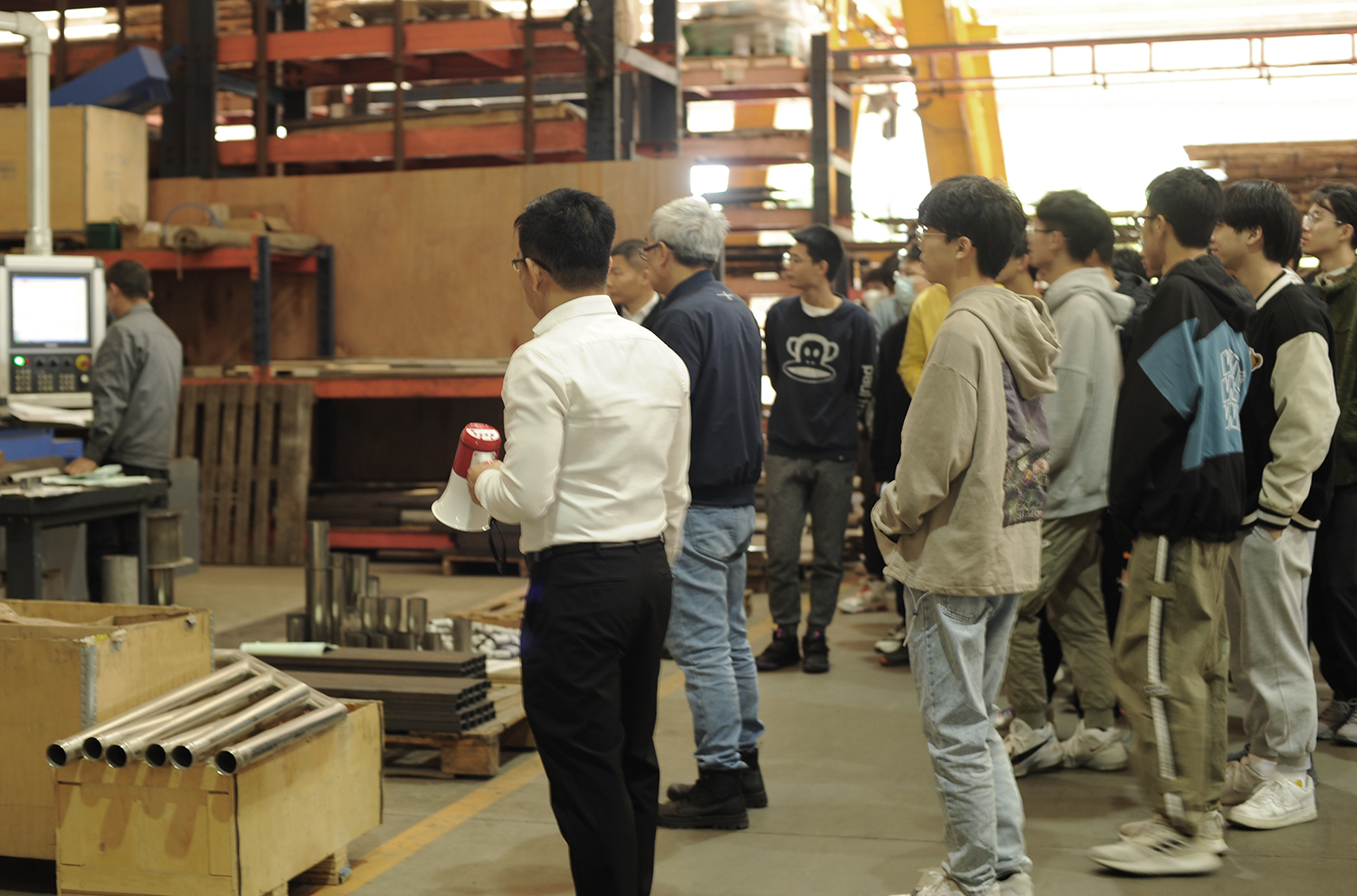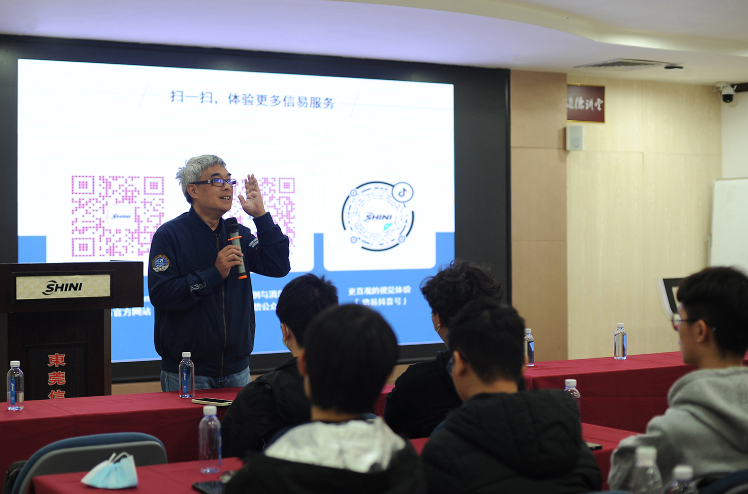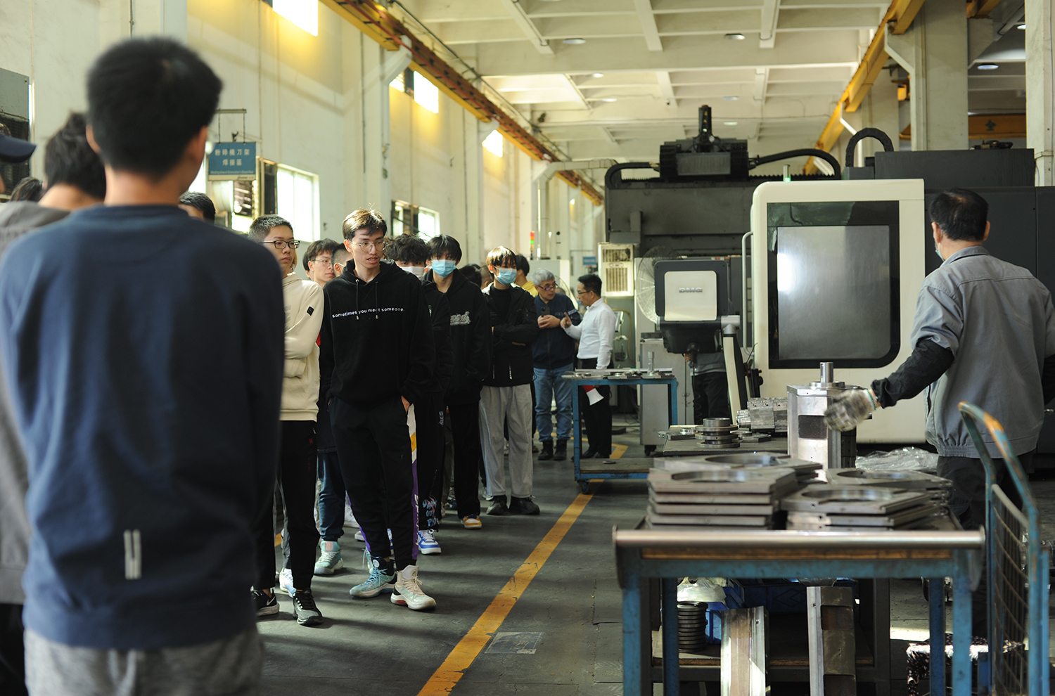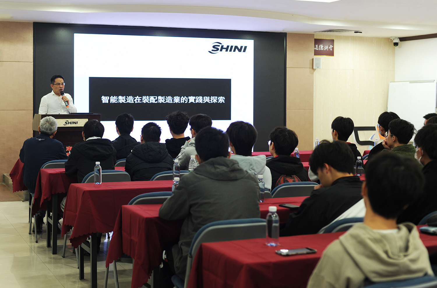 當天,近70名師生,分為5個小組,在系主任陳尚彥的組織下進入到了東莞信易電熱機械有限公司。闕壯懷協理以“智能製造在裝配製造業的實踐與探索”為題向同學們介紹了信易集團,並將每一個生產製作部門都進行了詳盡的介紹和講解。隨後,帶領同學們參觀了未來工廠。最後,白燕濤總工程師為同學們帶來了“智能工廠應用概論”的主題講座。在講座中,白總工與同學們分享了自己在智能製造領域的技術提升過程與自身在行業中成長的心路歷程,並向同學們介紹了很多應用場景, 可以讓未來工廠來實現向工業4.0轉型的方案。同學們也在講座中受到了鼓舞和啟發,紛紛表示學到了很多新的知識,對自己今後的學習、生活有很大的幫助和改善。