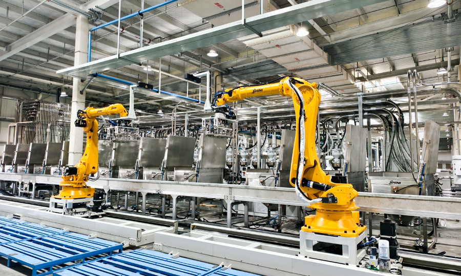 SRP-3300多关节码垛机器人,采用FEM优化运动原理,完全符合码垛作业需求,具有维护成本低、使用寿命长、可以同时码垛多条生产线等优点。机器人末端配非标夹爪,可以实现各种不同种类产品抓取、搬运、码垛;搭配自动栈板机、滚筒输送线,实现栈板供给、机器人码垛、输送等一体自动化。