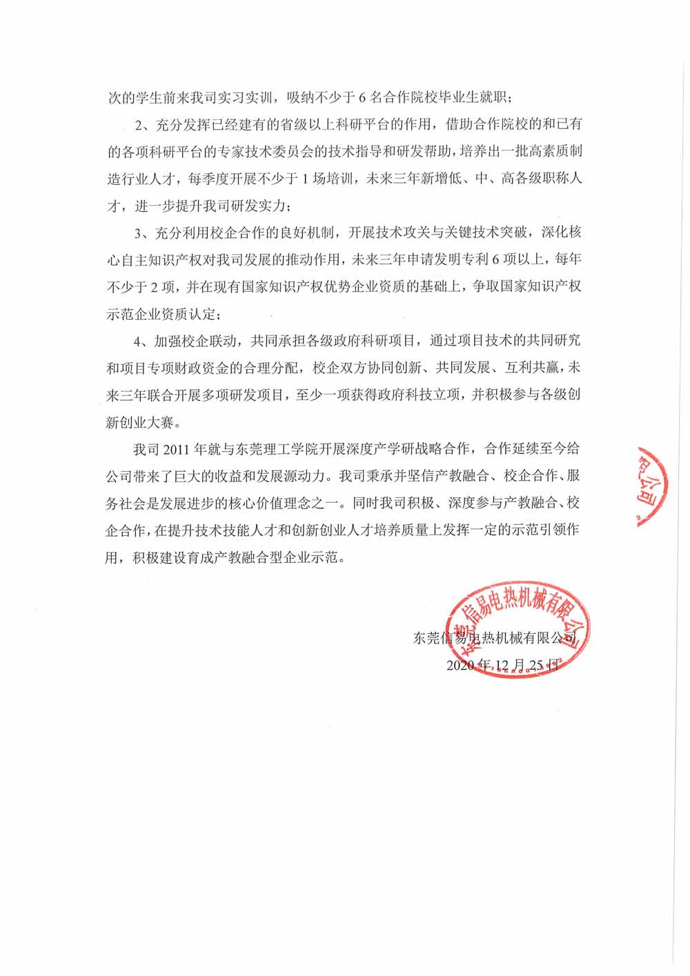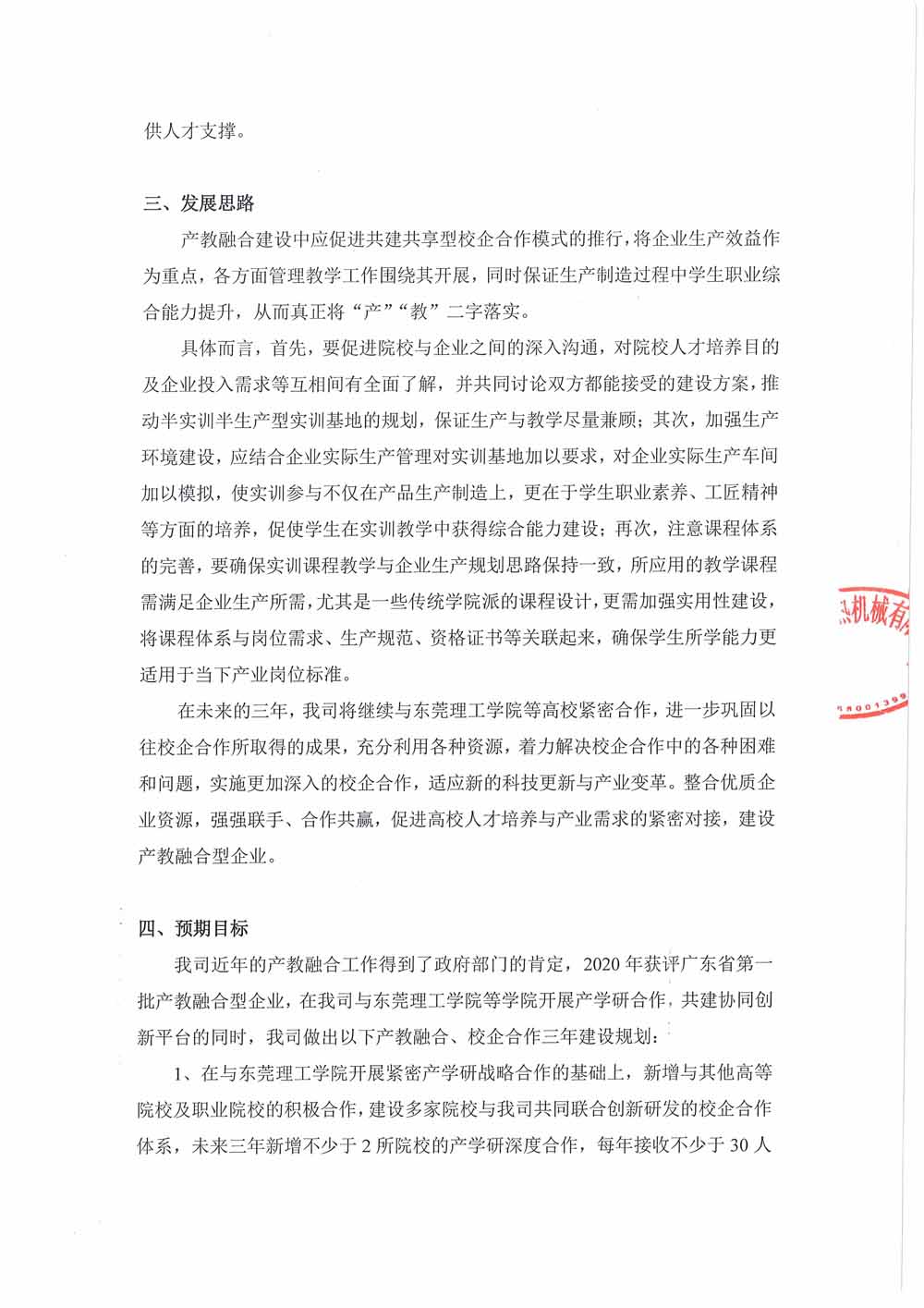 隨著創新驅動發展戰略的深入實施、對於教育、人才培養也有著新要求。近年來,我司積極與各高校、職業院校、科研院所緊密合作,一方面,利用高科技人才、科學技術優勢進行產學研合作,與東莞理工學院開展深度合作,建立了大學生校外實訓基地,另一方面,利用我司生產研發條件,吸引優質職業院校畢業生到我司就業,我司也榮獲“第一批東莞市職業院校定點實習實訓基地”榮譽。為進一步發展企業技術優勢與管理作用,深耕校企合作模式,聯合培養創新型人才,特定制本三年規劃。