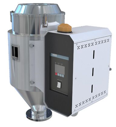 小型精密化的零部件成型過程中,原料使用量一般較小,採用常規除濕乾燥一體機,由於其體積較大,一般放置於地面上,通過送料系統將乾燥原料送至成型機,這樣會造成原料在輸送過程中或是較長時間存放在吸料機料斗中導致原料回潮。而配備無熱除濕乾燥器的乾燥機,可以完全避免此問題出現,它可以直接放置於成型機上工作,且其熱風為除濕之後的乾燥空氣,可達到與除濕乾燥一體機相同的乾燥效果。