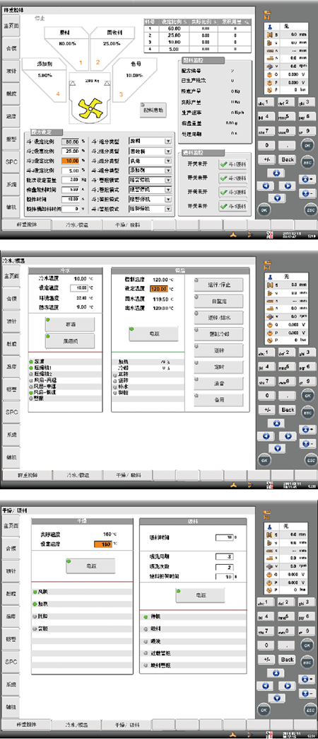 本次展會我們展出的演示系統包括成型機的控制面板及各個輔機的控制器,此系統由成型機的控制面板做為主控單元,五個不同輔機產品的控制器做為從站單元,從而實現成型機對於不種類型輔機產品的集中控制。